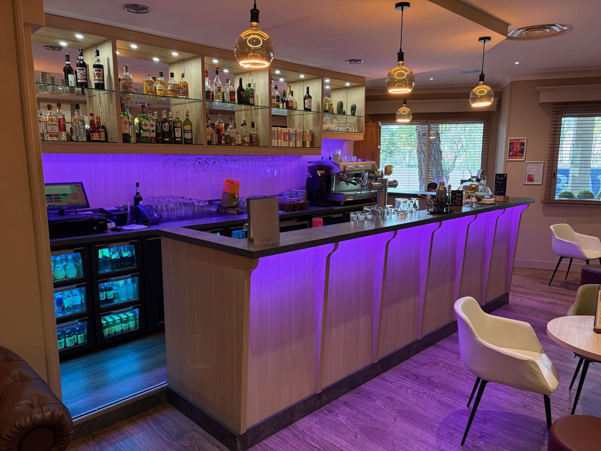 Fabrication et pose d'un bar sur-mesure pour une chaîne hôtelière à Marseille. Cet aménagement a été conçu pour allier l'ergonomie nécessaire au service en salle et l'esthétique attendue par l'établissement.
